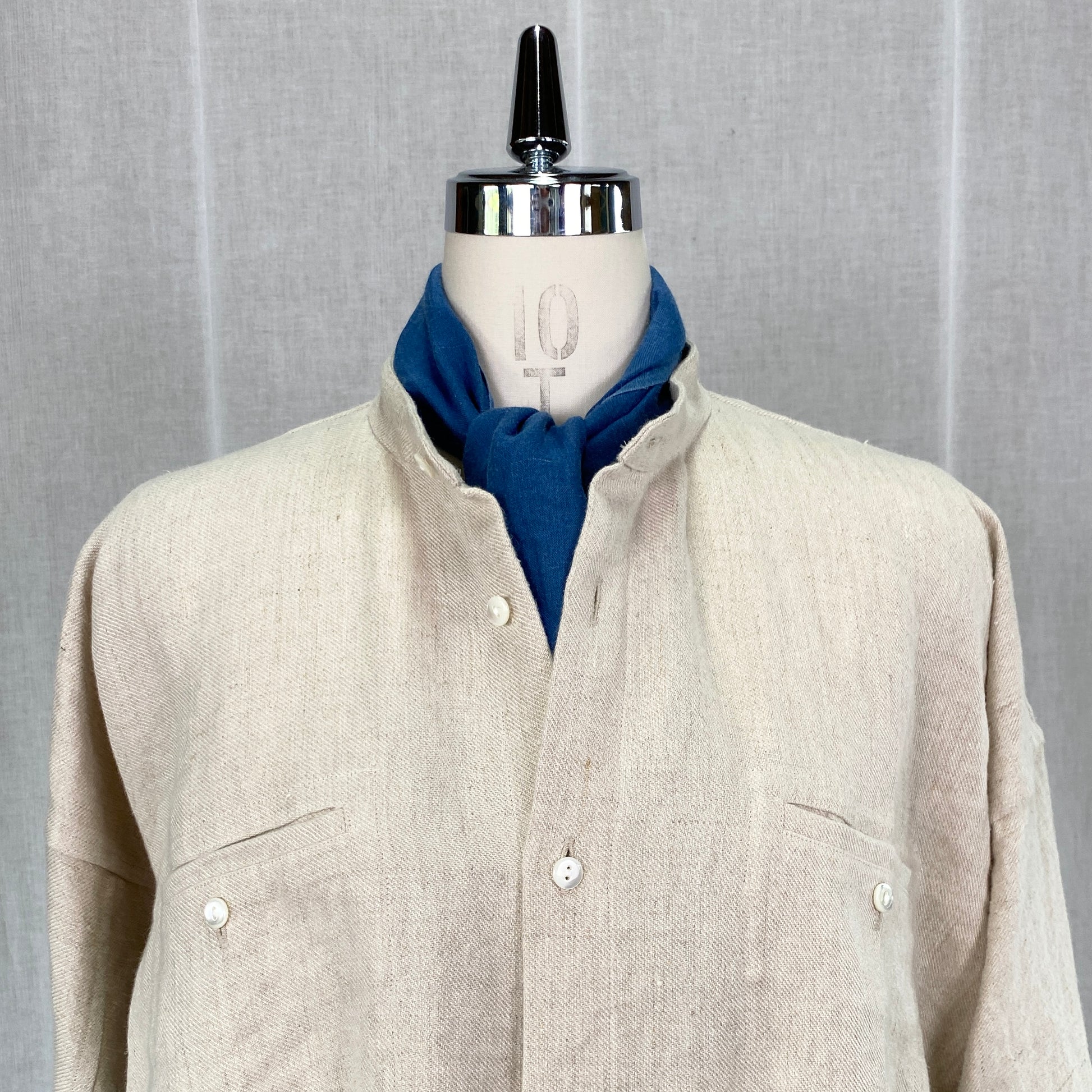 古来、御神事や儀式で清めの布として用いられてきた「浄布」を、日本の伝統技法「本建て正藍染」で染め上げました。手拭いとしてはもちろん、頭や首に巻いたりと、暮らしの中で多用途にご活用いただけます。藍の透明感と苧麻ならではの清涼感を日常に取り入れてください。